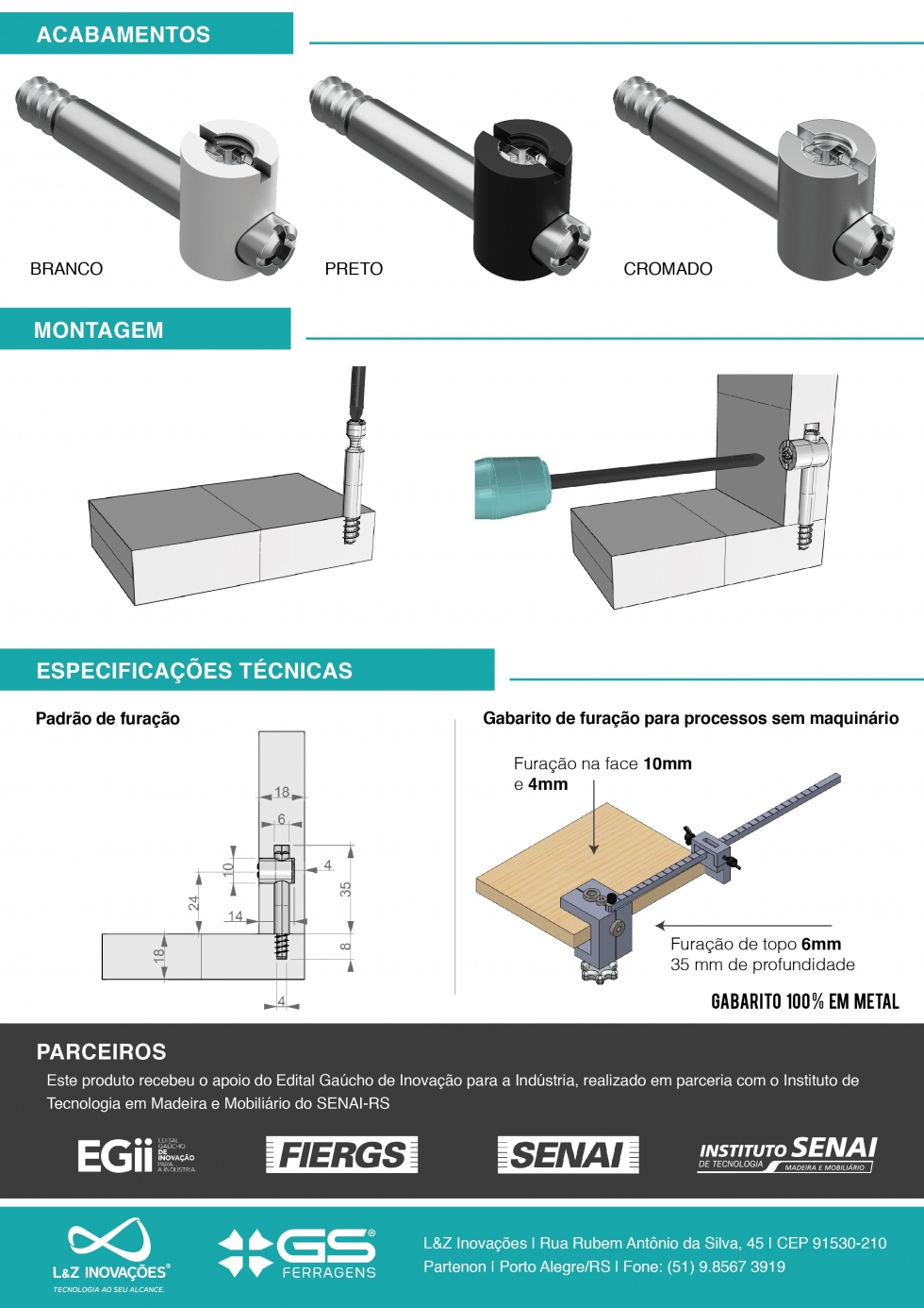 Se você gosta de ter os móveis da sua casa, da sua empresa com uma aparência discreta, praticidade, furação padrão, desmontável, você vai se interessar por este produto.